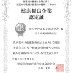 健康優良企業「銀の認定証」資格更新