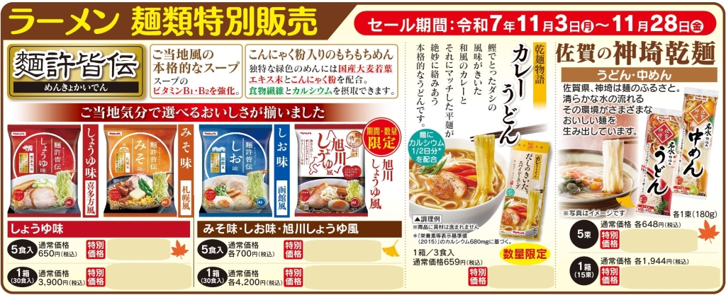 ヤクルトお馴染みの麺類が特別価格にて販売しております‼️寒くなってきたこれからの季節に最適🍜